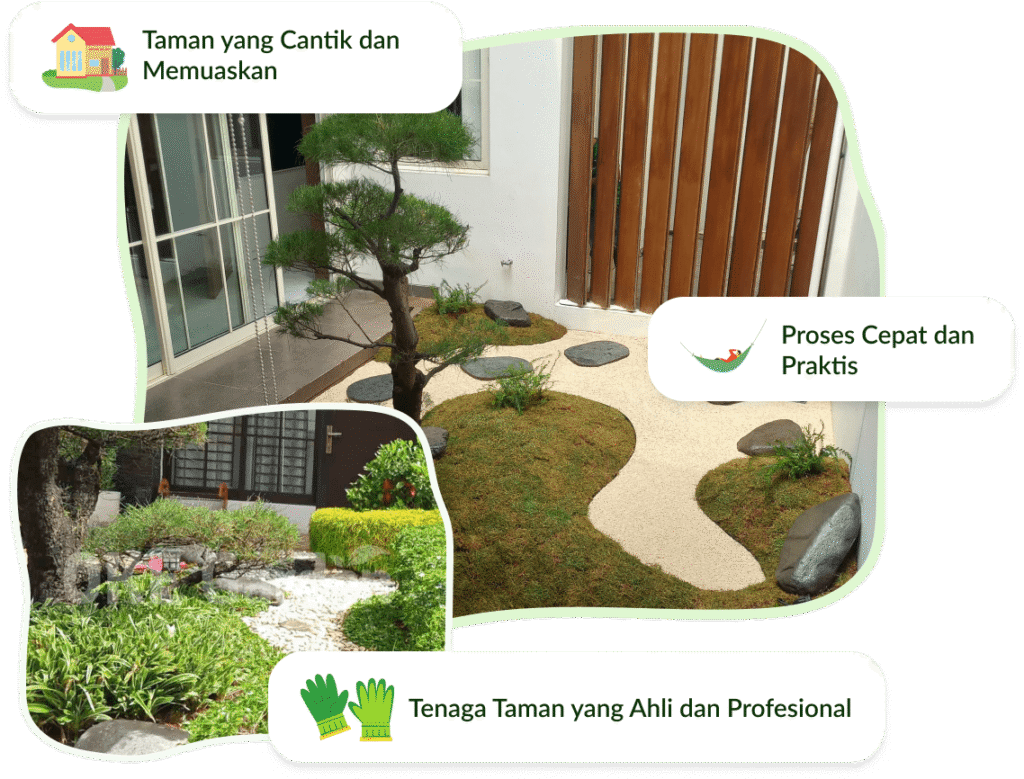 Bergaransi kepuasan pengerjaan yang sesuai harapan serta taman yang akan tumbuh Asri dan indah setelah beberapa bulan pengerjaan.